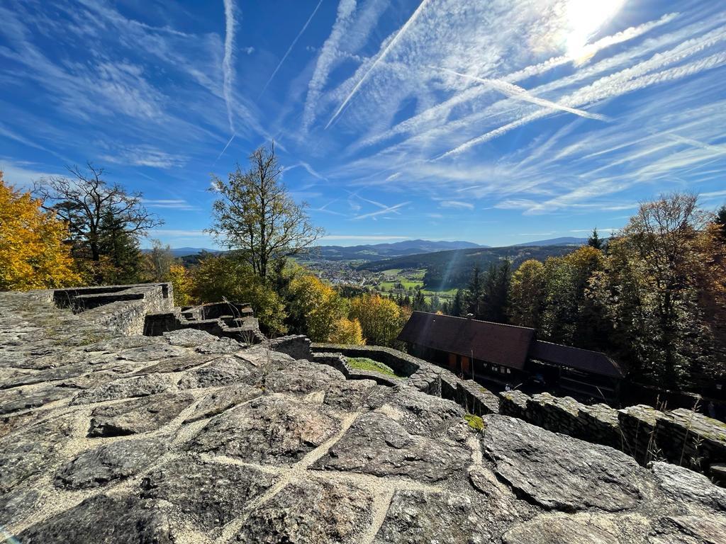 Die insgesamt ca. 10 km lange, mittelschwere Tour (ca. 300 Höhenmeter berauf) führt uns zum Kaitersberg mit seinen felsigen Gipfeln und weiten Ausblicken. Über die markanten Rauchröhren und das Steinbühler Gesenke erreichen wir nach ca. 5 km und ca. 2,5 Stunden ganz gemütlicher Gehzeit die Kötztinger Hütte. Hier kehren wir zum Mittagessen und zur Rast ein. Am frühen Nachmittag geht’s dann wieder leicht bergab zurück zum Parkplatz und gegen 16:30 Uhr kommen wir in Grafling an. Je nach Witterung und Wünschen können wir die Gehzeit vom Parkplatz Eschlsaign aus noch um ca. 3 km und 50